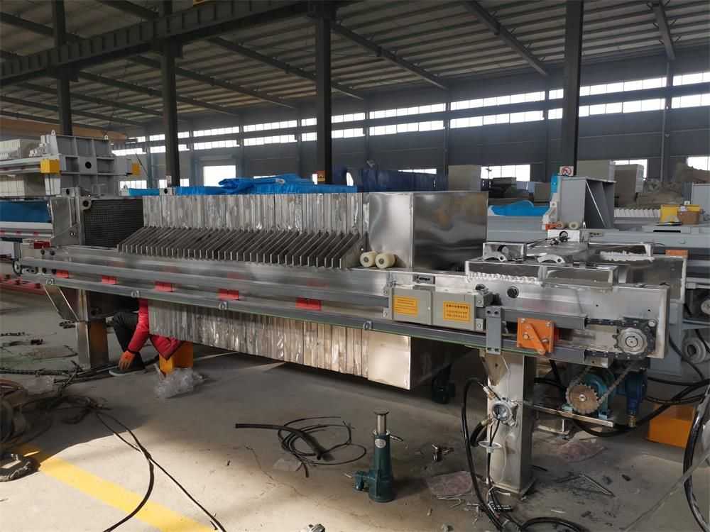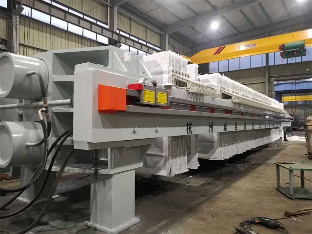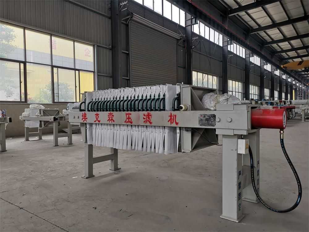隔膜壓濾機(jī)和常規(guī)箱式壓濾機(jī)的主要區(qū)別在于,在濾板的兩側(cè)都增加了兩個彈性膜(復(fù)合橡膠膜是一個整體式膜。在操作期間,當(dāng)進(jìn)料完成時,將高壓流體介質(zhì)注入膜中,并使整個膜膨脹以過濾濾餅,以進(jìn)一步使濾餅脫水,這是壓力過濾。在隔膜壓濾機(jī)運(yùn)行期間,液壓系統(tǒng)使用液壓油作為壓力載體來傳遞內(nèi)部壓力。